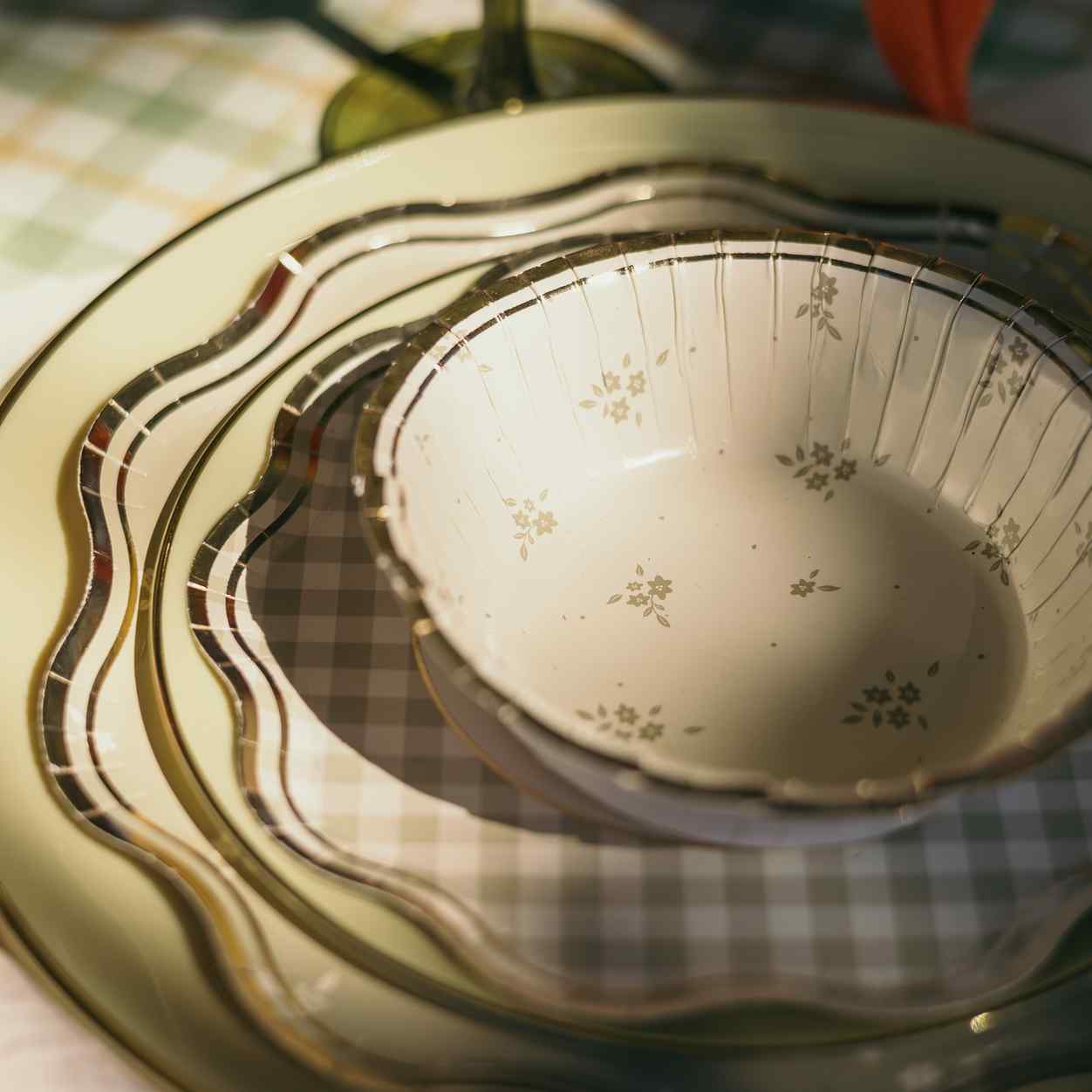 As taças em tons suaves, adornadas com pequenas flores primaveris, são perfeitas para apresentar os seus aperitivos e sobremesas. Rústica e elegante ao mesmo tempo, a nossa coleção é ideal para o seu primeiro piquenique na relva macia — aproveite ao máximo os primeiros raios de sol! Para uma mesa perfeitamente coordenada, combine-as com os nossos pratos pequenos e grandes. São isentos de plástico e possuem certificação FSC. Deixe-se seduzir!