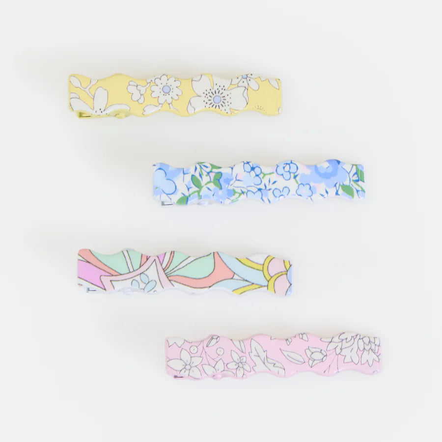 Faça com que todos os dias o seu cabelo fique perfeito com estes ganchos especiais. Com um design ondulado encantador, são confecionados com estampados florais Liberty para realçar qualquer look. Perfeitos para penteados de festa ou para dar um toque floral aos looks do dia a dia, são também uma ótima opção de presente, apresentados numa bonita embalagem com estampado Liberty que certamente fará as delícias de quem os receber. Indicado para crianças a partir dos 8 anos.