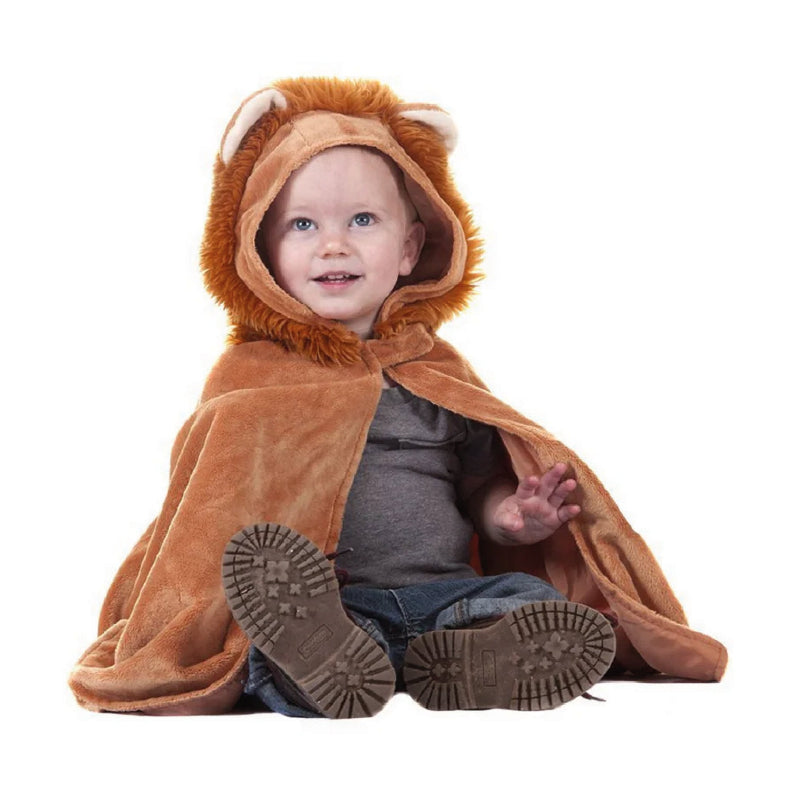 ¡Ser el rey de la selva nunca ha sido tan adorable! Esta adorable capa de león para bebé tiene un cierre de velcro en el cuello, un material suave y cómodo y una melena abundante lista para rugir a la hora de jugar. Dos adorables orejas completan el look de león en la capucha fácil de poner y quitar.