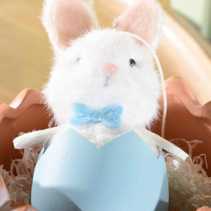Dê um toque de fofura e cor à sua decoração com estes adoráveis coelhinhos brancos em cascas de ovos coloridas, prontos a pendurar. Perfeitos para decorar a folha da palmeira ou como um delicado detalhe de Páscoa. Disponíveis com vestido ou colete e gravata. Uma graça!