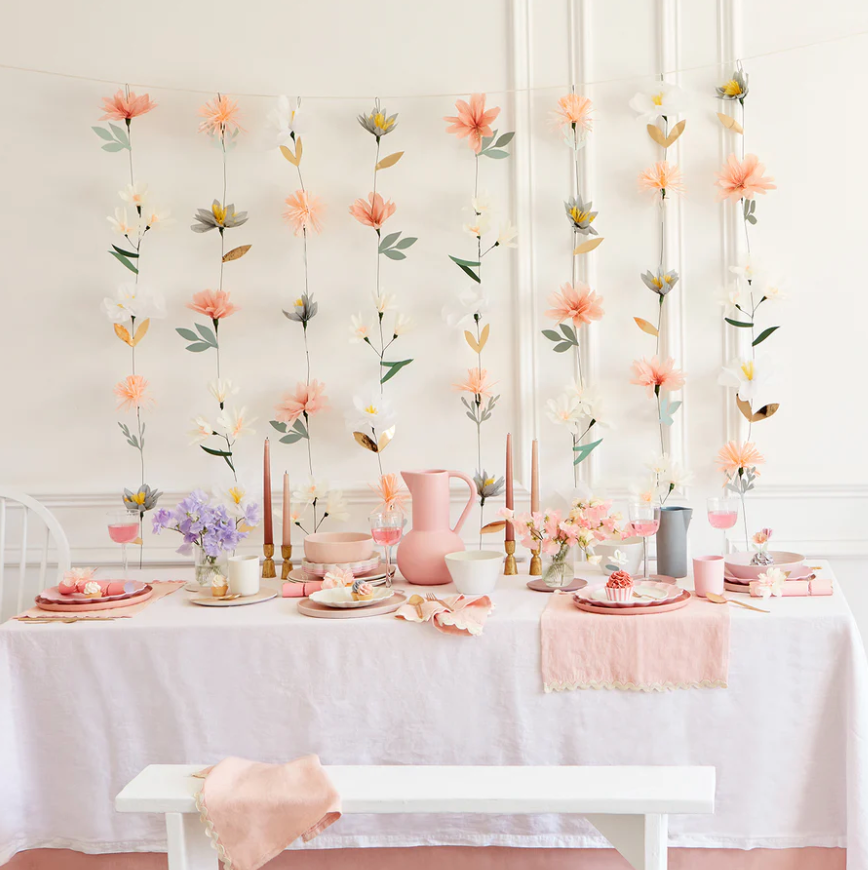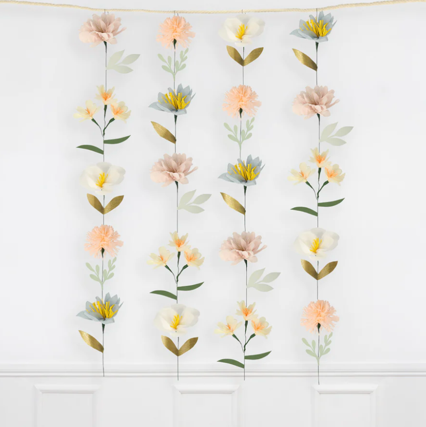 Com esta cortina de tiras com flores de papel de seda em tons pastéis e muito especiais. Foi pensado para que possa fazer uma parede com flores e assim dar um toque muito diferente à sua festa. Então, você pode usá-lo como decoração no quarto das crianças para dar um toque muito fresco.