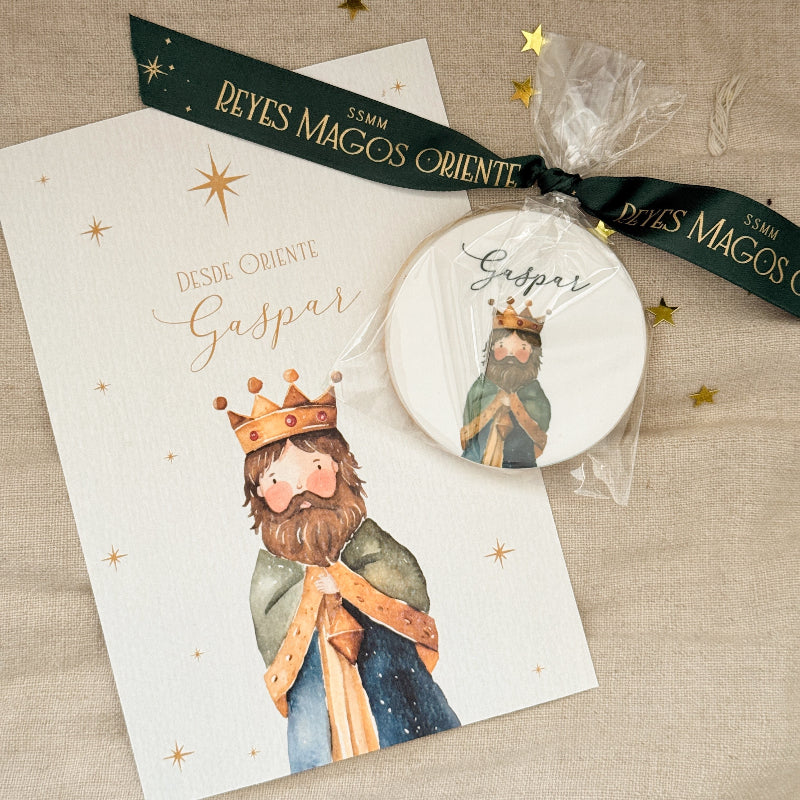 Pack: Galleta impresa con ilustración de Gaspar, tarjetón a juego y cinta