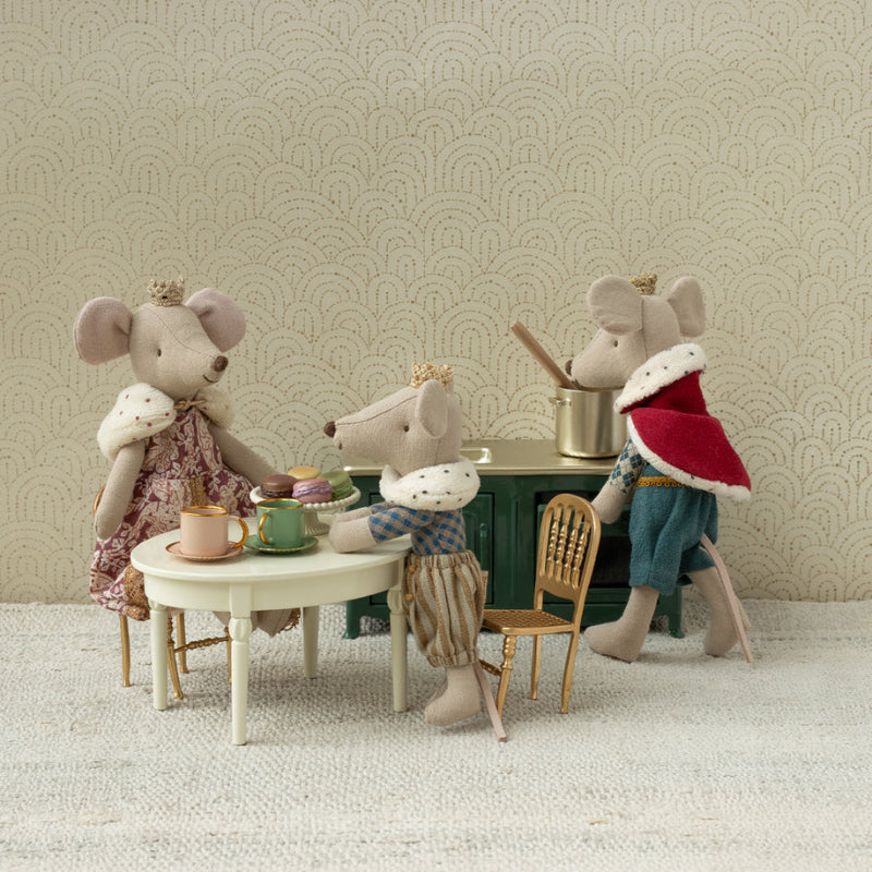 Un auténtico príncipe ratón en tamaño de hermano mayor. Luce sus mejores galas y esta listo para jugar en el castillo.