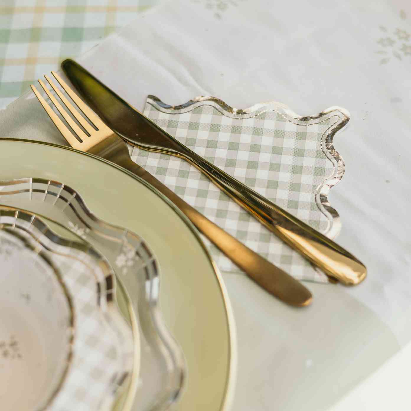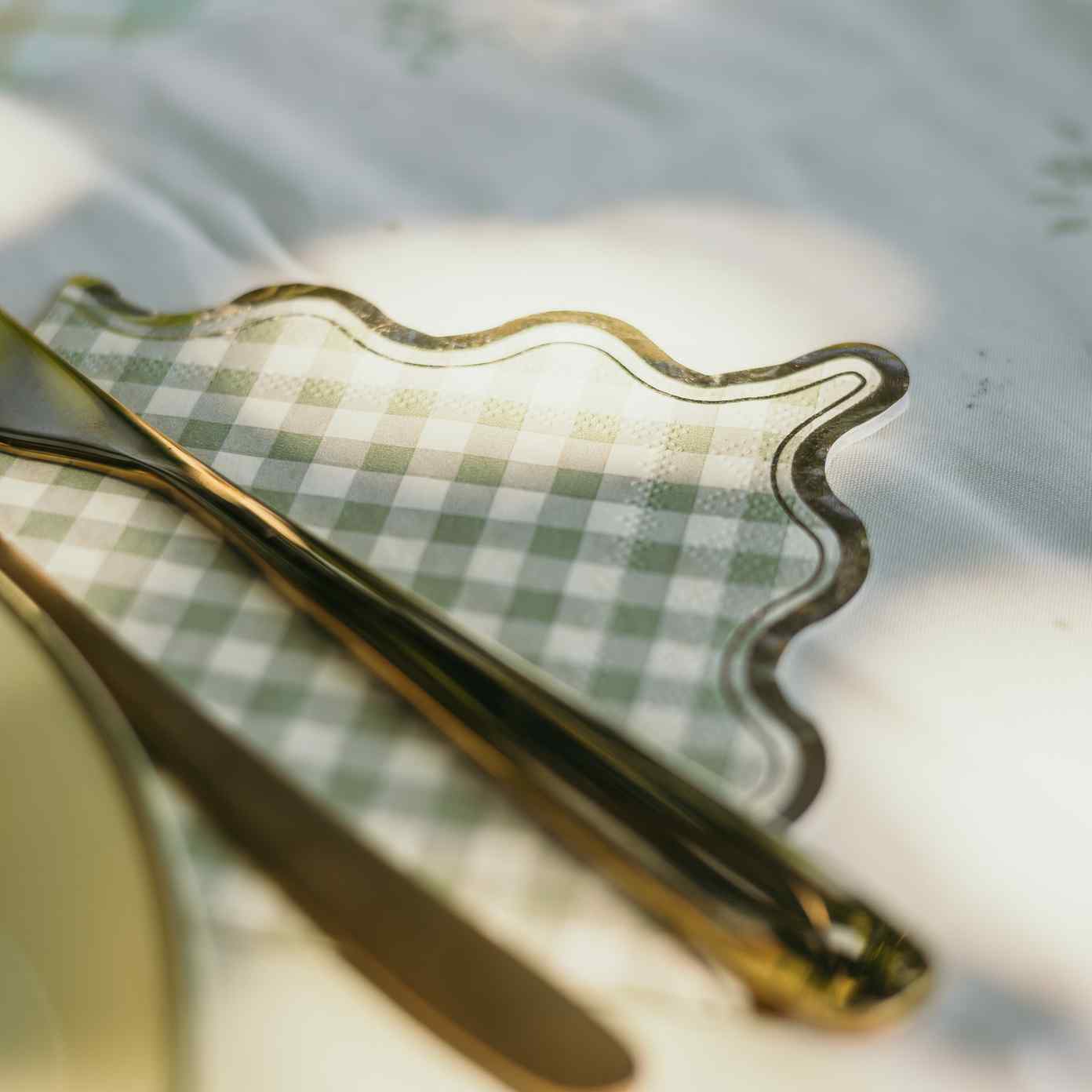 These cocktail napkins feature a soft and fresh gingham pattern. Elegant yet rustic, they're perfect for setting a beautiful table on the lawn or adding a touch of spring to your indoor gatherings. With their understated charm, they bring a touch of picnic chic to all your events. Add a touch of spring to your table with our FSC-certified napkins.