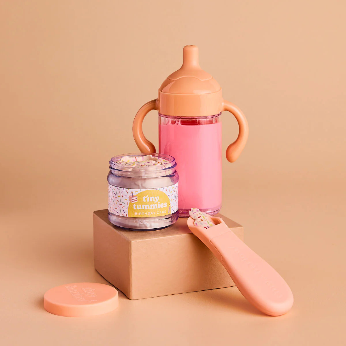 This set comes in beautiful individual packaging and is part of the Tiny Tummies collection, available in different flavors: Coconut Yogurt, Grape Jelly, Roast Chicken Dinner, Apple Purée, Banana Custard, Chocolate Custard, Strawberry Custard and Peach Jelly .
