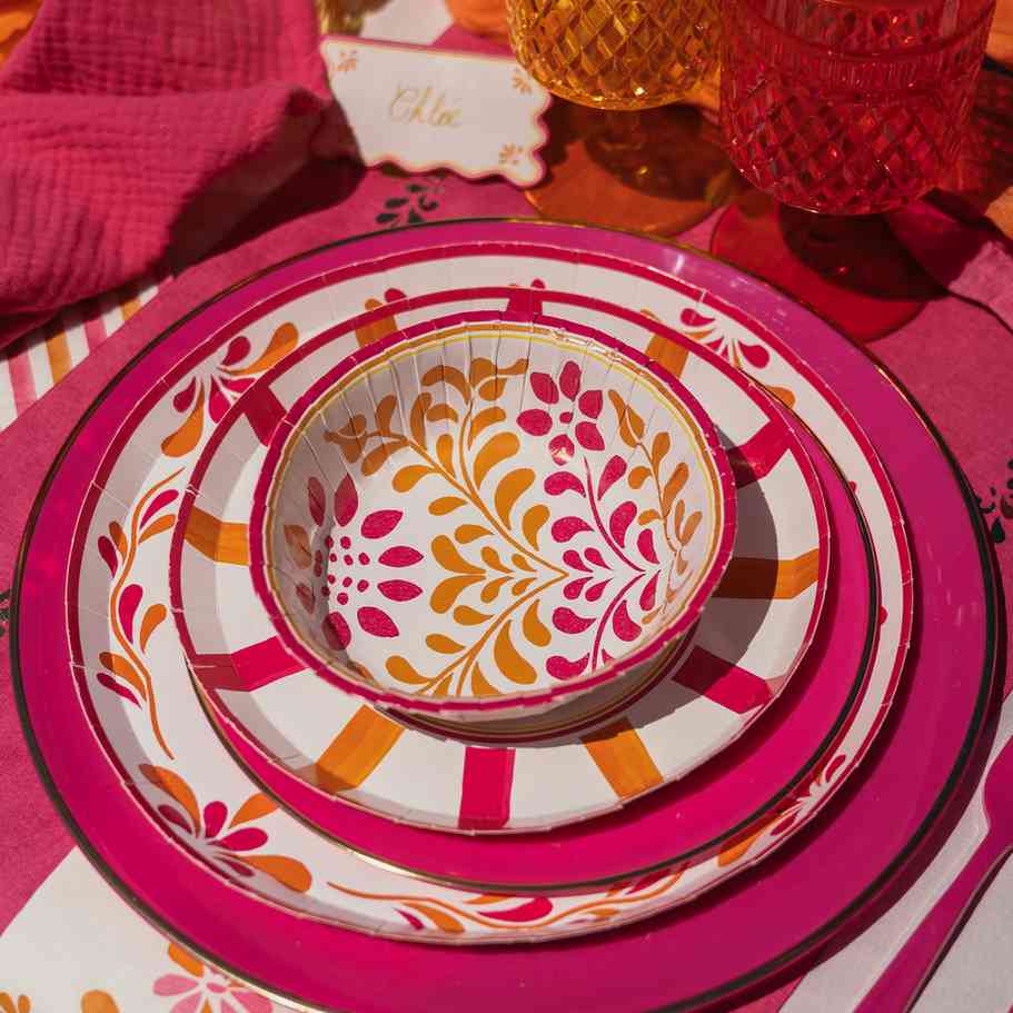 Bowls in vibrant, sunny hues are perfect for a festive meal that radiates the warmth of summer. Full of character, this collection infuses electrifying energy into your décor. It's a true explosion of color that transforms every moment into a burst of joy. For a perfectly coordinated table setting, combine them with small and large plates. They are plastic-free and FSC certified.