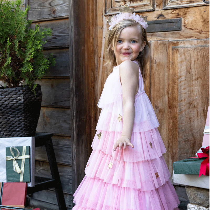 ¡Este disfraz de Árbol de Navidad Rosa es pura fantasía navideña! Confeccionado en capas de delicado tul rosa, este traje es un auténtico derroche de dulzura y encanto. Los volantes crean un efecto en cascada que recuerdan a los árboles más mágicos del bosque navideño. Adornado con estrellitas doradas brillantes y pequeños bastones de caramelo, aporta un toque festivo y juguetón. En cada detalle se siente la ilusión de las fiestas y te invita a vivir un cuento lleno de luz y alegría. Ideal para quienes quieren brillar con elegancia y originalidad en esta temporada navideña.