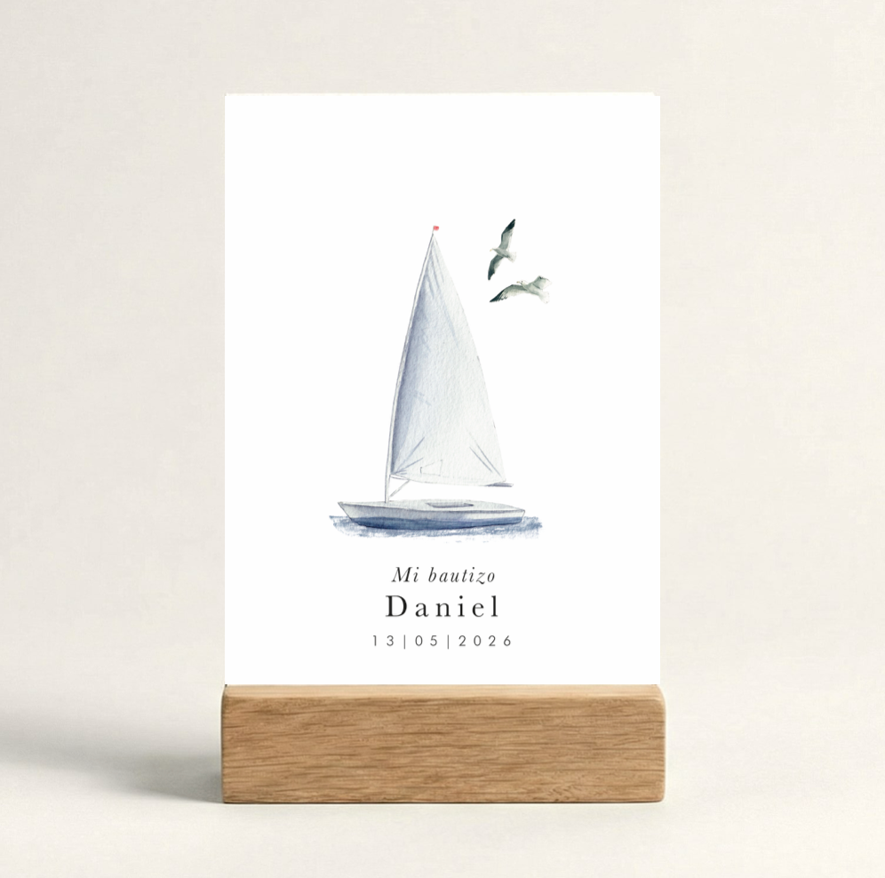 Estos cartelitos con soporte de madera natural son perfectos para usarlos como centro de mesa para decorar en un bautizo, comunión o fiesta de tu hija/o.