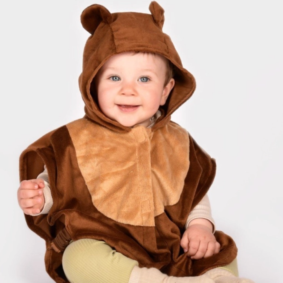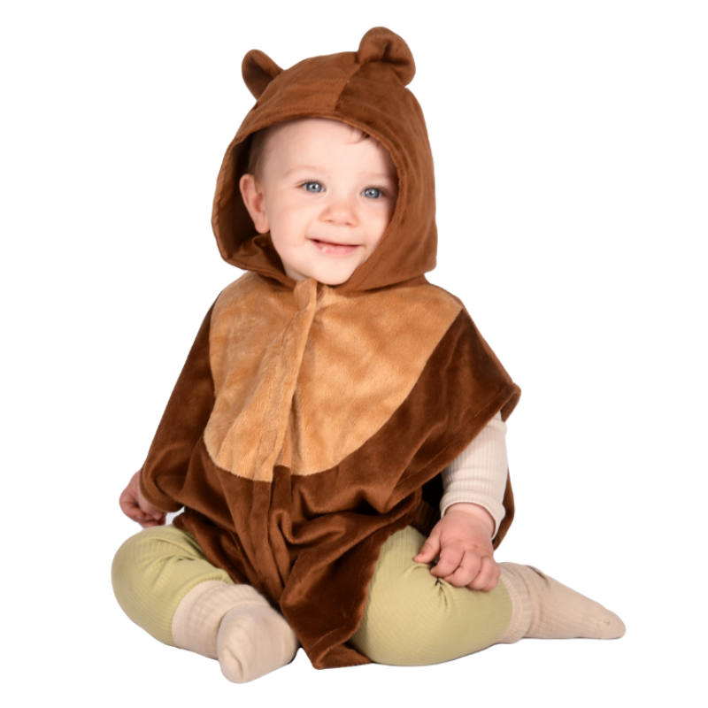 Este disfraz de oso marrón no puede ser más ideal. Se cierra con velcro por la parte delantera, incluye cola redonda y orejas en la capucha. Incluye elásticos en los laterales.Apto para la lavadora en programa suave o a 40º. No apto para la secadora. No planchar.