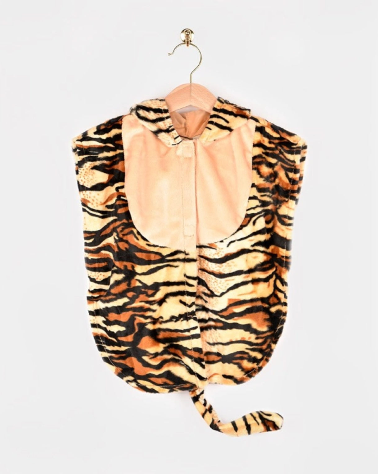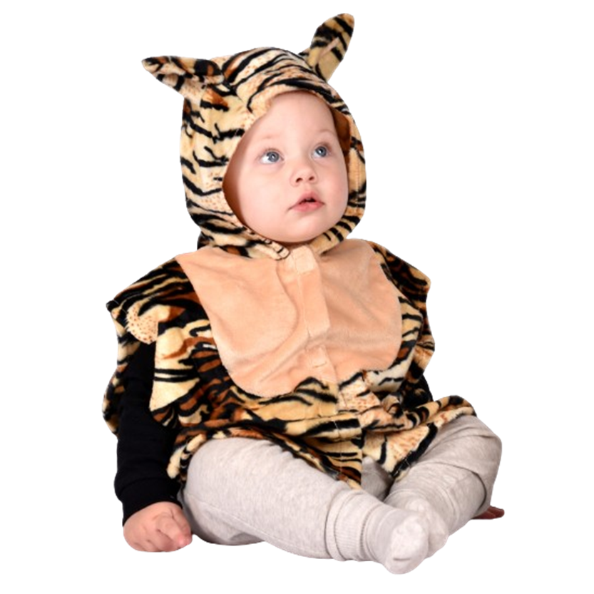 Este disfraz de tigre no puede ser más ideal. Se cierra con velcro por la parte delantera, incluye capucha cosida con orejas incluidas y cola al final del disfraz. En ambos laterales tiene una banda elástica.