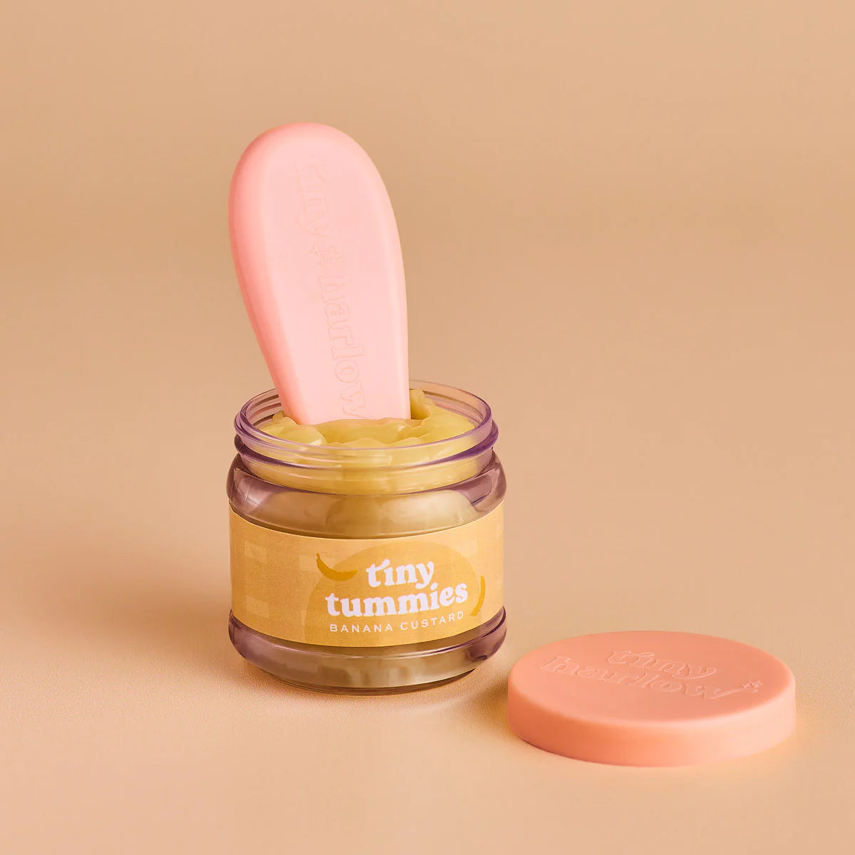 Este set se presenta en un bonito packaging individual y forma parte de la colección Tiny Tummies, disponible en distintos sabores: Coconut Yoghurt, Grape Jelly, Roast Chicken Dinner, Apple Purée, Banana Custard, Chocolate Custard, Strawberry Custard y Peach Jelly.