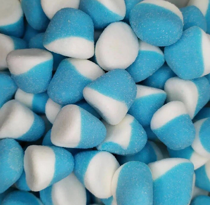 Caramelos de goma en forma de besitos con una deliciosa combinación de sabor frambuesa y nata con cobertura de azúcar.