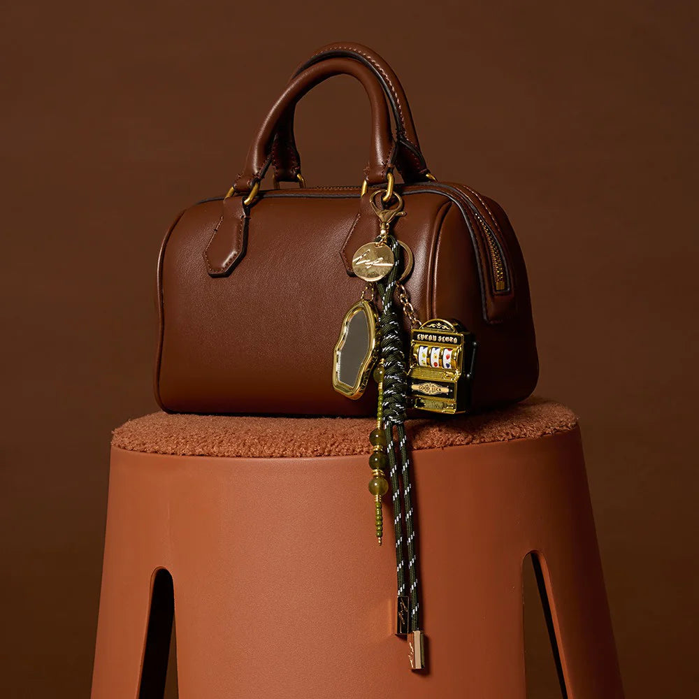 Nuestro Charm para bolso Bobby le da un toque único a tus bolsos favoritos. Hecho con cuentas, un cordón anudado y delicados dijes, se engancha fácilmente a las asas para un look elegante, divertido y personalizable. Tiene una divertida máquina de tragaperras y un espejito.