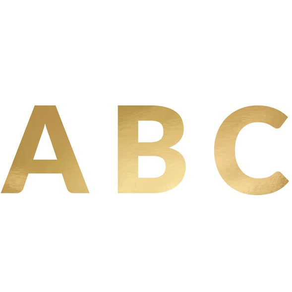 Incluye:4 letras A y E, 3 letras B, D, H, O, P, R, S, Y, 2 letras C, F, G, I, J, K, L, M, N, T, U, V, W, X, Z, 1 letra Q y 8 metros de cordel dorado. Medida letra: 14 cm. aproximada.