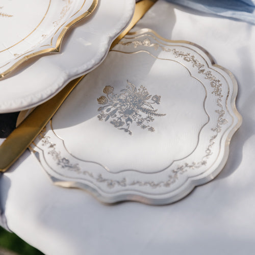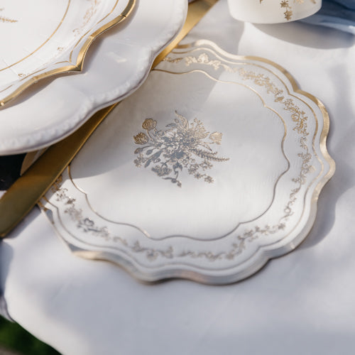 Adicione um toque de elegância vintage à sua celebração com os nossos Guardanapos Vintage Dourados. Este pacote inclui 16 guardanapos finamente desenhados, perfeitos para dar um toque sofisticado a qualquer evento. Cada guardanapo apresenta um delicado padrão floral dourado sobre fundo branco, realçado por elegantes bordas recortadas e acabamento brilhante. Ideal para casamentos, aniversários ou qualquer ocasião especial onde o estilo clássico e a distinção são essenciais. Impressione os seus convidados com estes detalhes requintados!